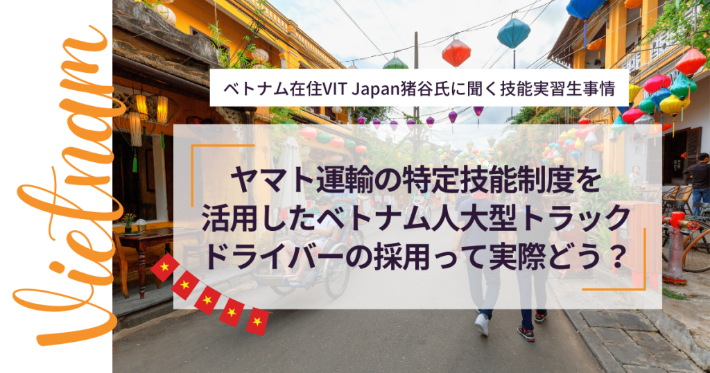 「ベトナム在住VIT Japan猪谷氏に聞く技能実習生事情」シリーズで大変お世話になっている猪谷さんに、今回はニュースでも大きな話題になりました「FPTジャパンとヤマト運輸、特定技能制度を活用したベトナム人大型トラックドライバーの採用・育成に関する基本合意書を締結」というニュースについて、実際どうなのか?というところをざっくばらんにお話していただきました。